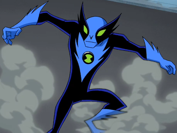 While this was happening, both Cerulean and Shenmue unmasked the Kineceleran and Citrakayah that were impersonating them. Cerulean apprehended the Kineceleran. (Blue face and skin. Long, prehensile tail that had black stripes on it. Three clawed hands. Wheeled feet. White eyes. Characteristic Kineceleran mask which can obscure their face. Black helmet -- long, elliptical, and pointed at the top. Black lips. Black facial markings. Black rings around eyes. Lack of pupils. Superhuman speed. Enhanced agility. Enhanced jumping capability. Enhanced reflexes. Enhanced recovery. Tornado generation via speed. Wall running. Water running. Enhanced strength. Enhanced dexterity.) The only thing Cerulean managed to get out of him was that his name was E-N, which was pronounced as "Ian". And, as such, it was Shenmue who brought the Citrakayah, named simply Allen. (Slim and human-sized. Blue and black fur. Black fur around eyes giving a mask-like appearance. Spiked legs and elbows.
